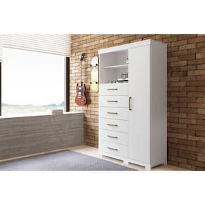 Cômoda de Quarto Marabá 1.6 c/ 1 Porta 2 Nichos e 6 Gavetas c/ Pés Branco - Santos Andirá