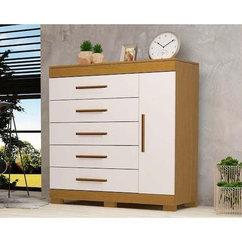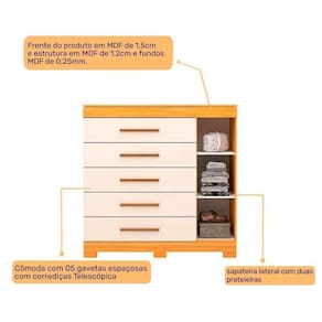 Cômoda de Quarto Rayane 1 Porta e 5 Gavetas c/ Sapateira Cinamomo/Off White - ACP Marca: ACP Móveis