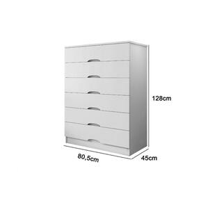 Cômoda de Quarto Sevilha 6 Gavetas MDF MDP Puxador Cava Off White Peroba Europa