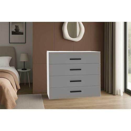 Cômoda de Quarto Valência c/ 4 Gavetas Branco/Cinza - Politorno
