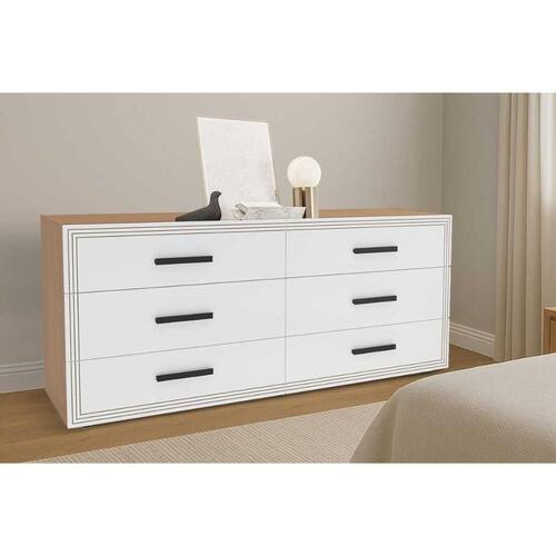 Cômoda de Quarto Valência c/ 6 Gavetas Freijo/Branco - Politorno