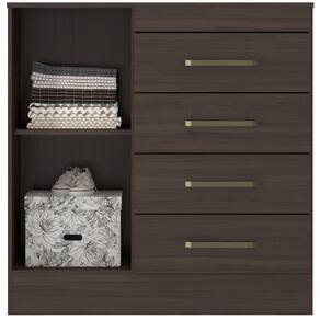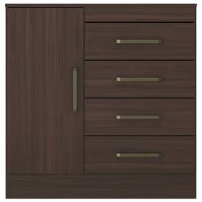 Estrutura: MDP de alto padrãoAcabamento: em pintura U.V., resistentePortas: Sim, 01 porta de abrir, com dobradiças metálicasGavetas: Sim, 04 gavetas com corrediça metálica, suporta o peso de até 3 KilosPrateleira: Sim, suporta o peso de ate 5 KilosPés: Sapatas Sim,Puxador: Sim, na coloração bronzeDimensões do produto montado