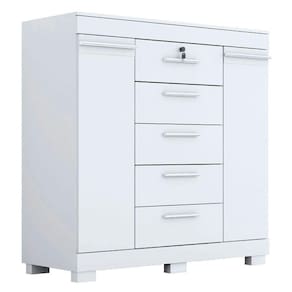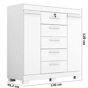 Apresentamos a Cômoda Diana Prime com 05 Gavetas com Chave da ACP Móveis. Com estrutura em MDF, ela possui puxadores ergonômicos, conta com 5 gavetas, 2 portas e 4 prateleiras, sendo que todos esses compartimentos possui o espaço interno amplo que irá surpreender você! Possui corrediças metálicas nas gavetas, oferecendo à você uma abertura muito mais eficiente.