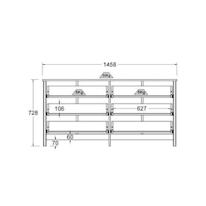 - Possui 6 gavetas que suportam até 5 kg cada.