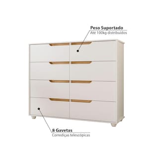 A Cômoda Doble é para ambientes para você que procura uma decoração aconchegante. Toda em estrutura reta, com puxadores retrô, um luxo! Se encaixa perfeitamente no quarto casal ou solteiro, com muito espaço interno para guardar as roupas e pequenos objetos. Com 6 gavetas grandes, sendo 2 menores, corrediças telescópicas e travas de sustentação para as gavetas maiores. Toda estrutura em MDP, caixa e frentes em 15 mm, puxadores em ABS e parte interna 100% na cor do produto.