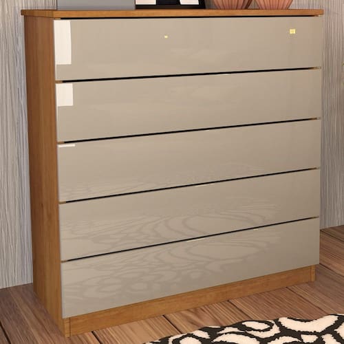 O(a) Cômoda Dona Premium 5 Gavetas Cinamomo/Off White - Pnr Móveis é produzido em MDP na escala de brilho Semi-Brilho, e possui um grau de dificuldade de montagem: Médio.