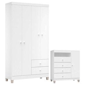 Cômoda e Guarda Roupa 4 Portas Baby Kids Branco Incorplac