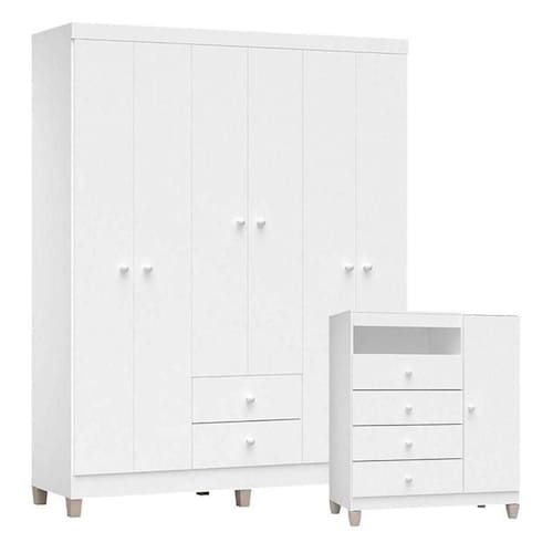 Cômoda e Guarda Roupa 6 Portas Baby Kids Branco Brilho Incorplac
