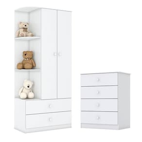 Cômoda e Guarda Roupa Infantil Amarelinha Branco Brilho - Henn