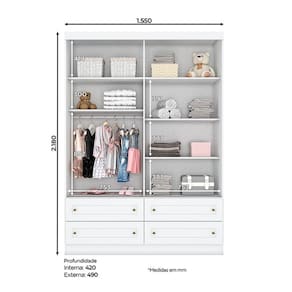 Guarda Roupa Infantil Americano 4 Portas Branco HP – Henn