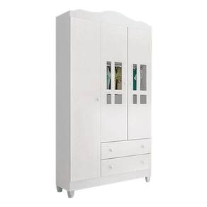 Cômoda e Guarda Roupa Infantil Ariel 3 Portas Branco Brilho Carolina