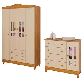 Cômoda e Guarda Roupa Infantil Ariel 4 Portas Off White Bétula – Carolina Baby