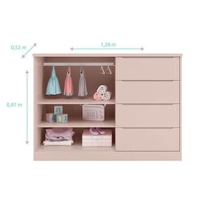Cômoda e Guarda Roupa Infantil Blenda Rosa Acetinado - Phoenix Baby
