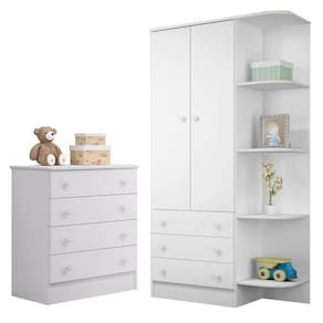 Cômoda e Guarda Roupa Infantil com Cantoneira Doce Sonho Branco – Qmovi