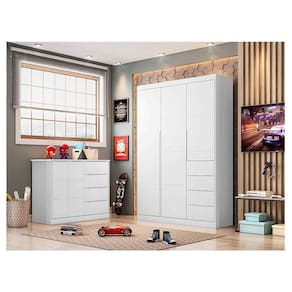 Cômoda e Guarda Roupa Infantil Eloá Branco Acetinado Phoenix Baby