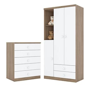 Cômoda e Guarda Roupa Infantil Pique-Esconde Rústico Branco - Henn
