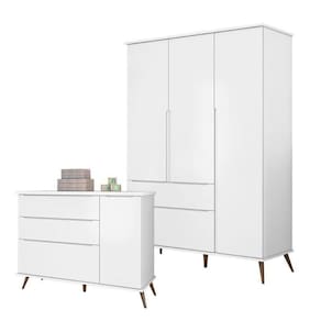 Cômoda e Guarda Roupa Infantil Retro Alice Branco Acetinado - Phoenix Baby