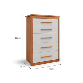 que tal a cômoda elegance? para complementar o quarto e ter uma boa ajuda na hora de organizar o vestuário, pode contar coômoda elegance! com 5 gavetas, ela favorece sua organização no dia a dia, acomodando peças que podem ser dobradas, desde camisetas e calças até as meias - ou você também pode usar uma gaveta para cabos e itens eletrônicos. feita em material resistente, a peça tem ótima durabilidade e design clean que torna fácil harmonizá-la com o restante dos móveis no seu cantinho de descanso. tudo de bom, né? Marca: Modern