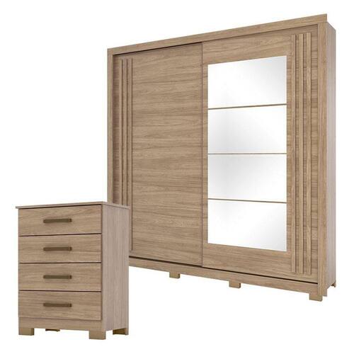Cômoda Ella e Guarda Roupa Casal Aston Jequitibá Brilho com Espelho - Henn