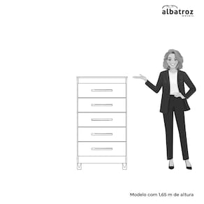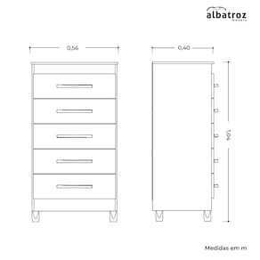 Características do Produto: Marca: Albatroz Modelo: Esmeralda Material do Produto: MDP Material da Porta: MDP Tipo de Pintura: Pintura UV Acabamento da Pintura: Fosco/brilho Material do Puxador: ABS Tipo de Gaveta: Externa Tipo de Corrediça: Metálica Material dos Pés: ABS Possui Gavetas: Sim Q. de Gavetas: 5 Possui Pés: Sim Q. de Pés: 4 Necessita Montagem: Sim Peso Suportado Pelas Gavetas -kg-: 5 Complexidade de Montagem: Alta Complexidade. Recomendasse a Contratação de Montador Profissional. Manutenção e Limpeza: Limpar Com Flanela ou Pano Macio Seco, Não Utilizar Produtos Abrasivos, Desengordurantes, Álcool ou Solvente. Não Expor o Produto Diretamente à Luz Solar e à Umidade.