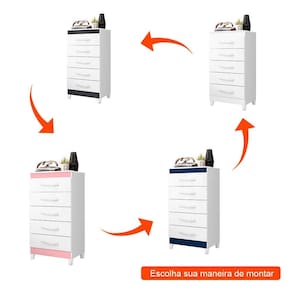 que tal a cômoda esmeralda? para quem busca um móvel versátil e funcional, a cômoda esmeralda é a escolha perfeita! com estrutura robusta, ela possui 5 gavetas, garantindo que as peças dobráveis fiquem bem acomodadas. destaque no design, a peça tem puxadores e caixaria em cores atemporais, itens que dão um toque elegante à decoração. ah, ela é do tipo flex, então você pode escolher o acabamento na hora da montagem, como mostram as imagens. Marca: Modern