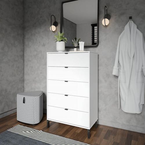 A cômoda Queens possui um visual dinâmico com 5 gavetas altas, adaptando-se para armazenar diversos itens da rotina. Com ótimo espaço de armazenamento e design marcante, ela se destaca em diversos projetos.