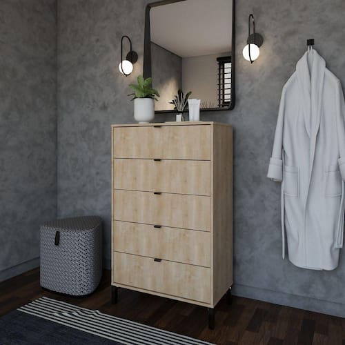 A cômoda Queens possui um visual dinâmico com 5 gavetas altas, adaptando-se para armazenar diversos itens da rotina. Com ótimo espaço de armazenamento e design marcante, ela se destaca em diversos projetos.