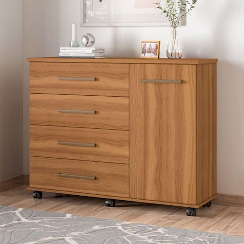 O(a) Cômoda Flora 1 Porta 4 Gavetas Amêndola/Touch - Demóbile é produzido em MDP na escala de brilho Brilho e Fosca com Textura, e possui um grau de dificuldade de montagem: Médio.