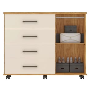 A Cômoda Flora possui um lindo design que proporciona charme e elegância ao seu quarto. Um produto imponente de dimensões amplas, gavetas com maior profundidade e deslize perfeito devido as corrediças telescópicas, rodízios facilitam a movimentação do móvel para limpeza e compartimento com porta com prateleira e cabideiro.