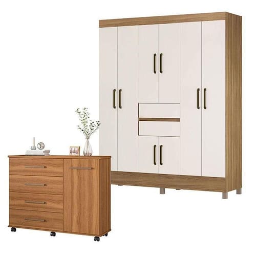 Cômoda Flora e Guarda Roupa Casal Munique Amêndola Off White - Demóbile