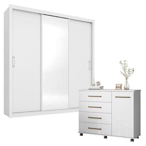 Cômoda Flora e Guarda Roupa Casal Residence Branco - Demóbile