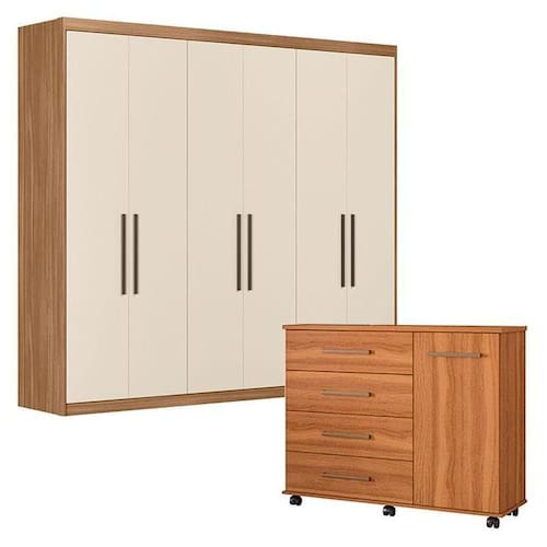 Cômoda Flora e Guarda Roupa Casal Venice 62480 Amendola Touch Off White - Demóbile