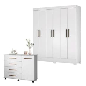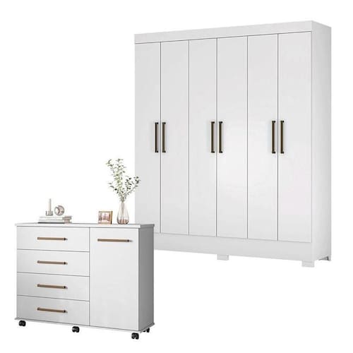 Cômoda Flora e Guarda Roupa Casal Verso Branco - Demóbile