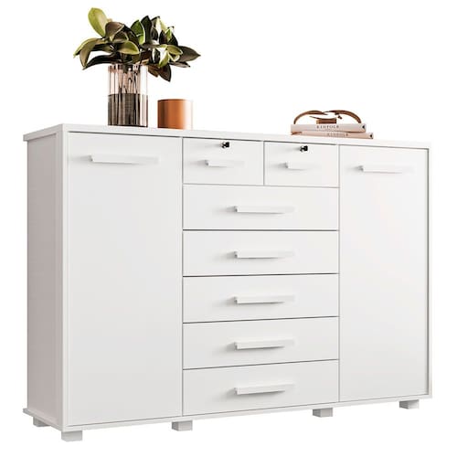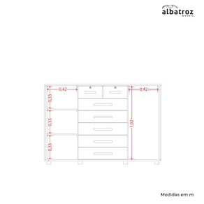 Características do Produto: Marca: Albatroz Modelo: Fontana Material do Produto: MDP Material da Porta: MDP Tipo de Pintura: Pintura UV Acabamento da Pintura: Fosco Material do Puxador: MDF Revestido Tipo de Cabideiro: Alumínio Tipo de Gaveta: Externa Tipo de Corrediça: Telescópica Tipo de Porta: Bater Tipo de Dobradiça: Metálica Material dos Pés: ABS Possui Gavetas: Sim Q. de Gavetas: 7 Possui Portas: Sim Q. de Portas: 2 Possui Prateleiras: Sim Q. de Prateleiras: 2 Possui Pés: Sim Q. de Pés: 8 Necessita Montagem: Sim Peso Suportado Pelas Gavetas -kg-: 5 Complexidade de Montagem: Alta Complexidade. Recomendasse a Contratação de Montador Profissional. Manutenção e Limpeza: Limpar Com Flanela ou Pano Macio Seco, Não Utilizar Produtos Abrasivos, Desengordurantes, Álcool ou Solvente. Não Expor o Produto Diretamente à Luz Solar e à Umidade.