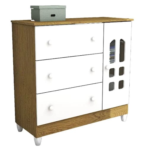 Cômoda Fraldário Eloa 1 Porta 3 Gavetas Carolina Baby A Cômoda Fraldário Eloa 1 Porta 3 Gavetas Carolina Baby é o produto certo para trazer um toque especial dentro do quarto do seu bebê. Essa cômoda possui 1 porta com espaço ideal para você ter a praticidade e organização ao armazenar os objetos e utensílios do seu neném. O modelo também conta com 3 gavetas resistentes e duráveis para você guardar toalhas, fraldas, lencinhos e muitos outros itens de uso diário, deixando o ambiente cada vez mais organizado. Os puxadores em PVC da Cômoda Fraldário Eloa 1 Porta 3 Gavetas Carolina Baby merecem destaque por ajudarem a compor o quartinho do seu filho com estilo moderno e qualidade. Além disso, essa cômoda é produzida em MDP/MDF, um material de alta propriedade que proporciona mais resistência ao móvel.\nMEDIDAS\nAltura 92,5 cm\nLargura 95 cm\nProfundidade 41 cm\nCARACTERÍSTICAS\nModelo Cômoda Fraldário Eloa\nTipo do Produto Cômoda Fraldário\nGarantia 3 meses\nMaterial MDP/MDF\nTipo de Corrediça Metálica\nMaterial Puxador PVC\nFabricante Carolina Baby\nQuantidade de Gavetas 03\nQuantidade de Portas 01\nNecessita Montagem Sim\nAcompanha Manual de Instalação Sim\nINFORMAÇÕES IMPORTANTES\nObjetos decorativos que porventura apareçam na foto, não acompanham o produto. Não nos responsabilizamos pela montagem/instalação dos produtos.\nMontagens, desmontagens e instalações são responsabilidades do cliente. Indicamos que contrate uma empresa de montagem ou um montador de sua confiança.\nAlém disso, favor verificar se os pés e acessórios estão dentro do forro inferior do produto. Em suma, todas as informações divulgadas sobre o produto são de responsabilidade do Fabricante.\nAs cores do produto podem variar de acordo com o seu monitor, a iluminação do ambiente em que você está e até mesmo a sua percepção visual. Além da cor, pequenos detalhes e acabamentos podem não ficar evidentes na foto, por isso as imagens são meramente ilustrativas.