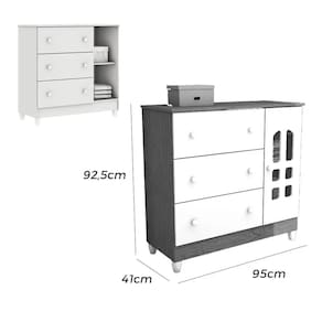 Cômoda Fraldário Eloa 1 Porta 3 Gavetas Carolina Baby A Cômoda Fraldário Eloa 1 Porta 3 Gavetas Carolina Baby é o produto certo para trazer um toque especial dentro do quarto do seu bebê. Essa cômoda possui 1 porta com espaço ideal para você ter a praticidade e organização ao armazenar os objetos e utensílios do seu neném. O modelo também conta com 3 gavetas resistentes e duráveis para você guardar toalhas, fraldas, lencinhos e muitos outros itens de uso diário, deixando o ambiente cada vez mais organizado. Os puxadores em PVC da Cômoda Fraldário Eloa 1 Porta 3 Gavetas Carolina Baby merecem destaque por ajudarem a compor o quartinho do seu filho com estilo moderno e qualidade. Além disso, essa cômoda é produzida em MDP/MDF, um material de alta propriedade que proporciona mais resistência ao móvel.\nMEDIDAS\nAltura 92,5 cm\nLargura 95 cm\nProfundidade 41 cm\nCARACTERÍSTICAS\nModelo Cômoda Fraldário Eloa\nTipo do Produto Cômoda Fraldário\nGarantia 3 meses\nMaterial MDP/MDF\nTipo de Corrediça Metálica\nMaterial Puxador PVC\nFabricante Carolina Baby\nQuantidade de Gavetas 03\nQuantidade de Portas 01\nNecessita Montagem Sim\nAcompanha Manual de Instalação Sim\nINFORMAÇÕES IMPORTANTES\nObjetos decorativos que porventura apareçam na foto, não acompanham o produto. Não nos responsabilizamos pela montagem/instalação dos produtos.\nMontagens, desmontagens e instalações são responsabilidades do cliente. Indicamos que contrate uma empresa de montagem ou um montador de sua confiança.\nAlém disso, favor verificar se os pés e acessórios estão dentro do forro inferior do produto. Em suma, todas as informações divulgadas sobre o produto são de responsabilidade do Fabricante.\nAs cores do produto podem variar de acordo com o seu monitor, a iluminação do ambiente em que você está e até mesmo a sua percepção visual. Além da cor, pequenos detalhes e acabamentos podem não ficar evidentes na foto, por isso as imagens são meramente ilustrativas.
