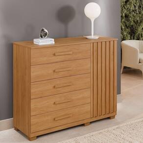 Cômoda França 5 Gavetas 1 Porta Ripada 2 Prateleiras Cinamomo