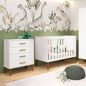 Cômoda Gaveteira Infantil Isis Reller 4 Gavetas em MDF Retrô - Branco