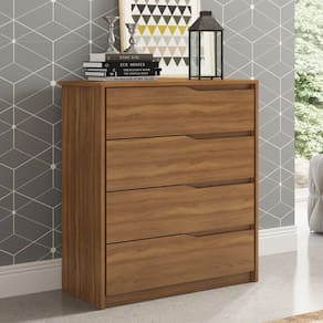 As 4 gavetas com corrediças metálicas oferecem espaço amplo e praticidade, suportando até 4kg cada, enquanto o tampo suporta até 8kg. O rebaixo nas gavetas dispensa puxadores, garantindo um visual clean e contemporâneo.