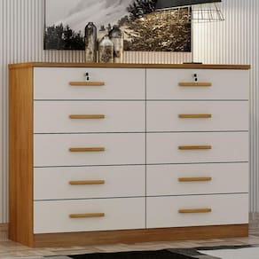 Precisando de uma cômoda para ter mais praticidade no seu dia? Apresentamos a linda cômoda gaveteiro da linha Milão, possui 10 gavetas sendo 2 delas com chave proporcionando amplo espaço para organizar itens de sua preferência. Os materiais de fabricação são de alta qualidade em MDP/MDF garantindo durabilidade e resistência. As gavetas são esquipadas com corrediças telescópicas garantindo mais qualidade e suavidade ao manusear. Não perca mais tempo venha aproveitar e garantir já a sua!