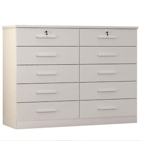 Precisando de uma cômoda para ter mais praticidade no seu dia? Apresentamos a linda cômoda gaveteiro da linha Milão, possui 10 gavetas sendo 2 delas com chave proporcionando amplo espaço para organizar itens de sua preferência. Os materiais de fabricação são de alta qualidade em MDP/MDF garantindo durabilidade e resistência. As gavetas são esquipadas com corrediças telescópicas garantindo mais qualidade e suavidade ao manusear. Não perca mais tempo venha aproveitar e garantir já a sua!