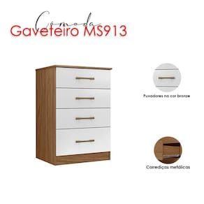 Está montando seu quarto? Apresentamos para você esta bela cômoda da linha MS913. Contando com quatro gavetas espaçosas, equipadas com corrediças metálicas que garantem um deslizamento suave. O destaque fica por conta da última gaveta com tamanho maior, perfeita para acomodar seus itens maiores. Os puxadores na cor bronze dão um toque de requinte. Fabricado pela Moval, é desenvolvido em MDP de alta qualidade. Sendo a combinação perfeita para compor seu quarto com praticidade e sofisticação, aproveitem!