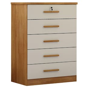 Esta precisando de uma cômoda? Apresentamos a linha Suiça, uma cômoda com 5 gavetas sendo uma delas equipada com chave para garantir mais segurança aos seus pertences. Fabricada em MDP/MDF garantindo qualidade e resistência. Seus puxadores amadeirados agregam charme e sofisticação, tornando-a uma peça versátil para complementar a decoração do seu quarto com estilo e praticidade. Venha aproveitar e garantir já o seu!