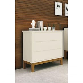 A Cômoda Gaveteiro Classic New - MóveisAqui, com um ar retrô o modelo de seus pés em madeira maciça, um desing clean que combina com vários estilos de decoração. É ótima para a organização das roupinhas e itens do seu bebê, possibilita um amplo espaço para armazenamento com suas três gavetas, de maneira que a organização do dia-a-dia possa ser mais fácil. Possui puxadores embutidos, onde as aberturas ocorrem através de recortes no MDF que possibilitam o perfeito encaixe da mão para que possa abrir as portas e gavetas.