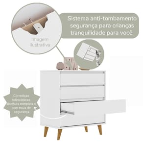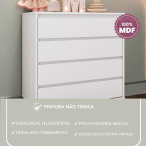 Cômoda Infantil Gaveteiro para Quarto de Bebê 100% MDF | 4 Gavetas Puxador Cava Pés Palito em Madeira Maciça Anti-Tombamento