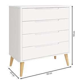 Cômoda Gaveteiro Infantil Retrô Boom Branco com Pés Madeira Natural - Reller