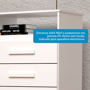 O(a) Cômoda Gaveteiro Jéssica 4 Gavetas 100% Mdf Branco - Acp Móveis é produzido em 100% MDF e MDF na escala de brilho Ajustar, e possui um grau de dificuldade de montagem: Médio.