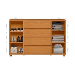 4 gavetas grandes com reforço interno e corrediças telescópicas, proporcionando abertura suave e maior resistência;