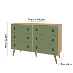 ESPECIFICAÇÕES - Possui 6 gavetas - Estrutura em MDP/BP 15 mm - Puxadores em courino - Acabamento com pintura UV - Produto com acabamento Premium - Pés em madeira maciça