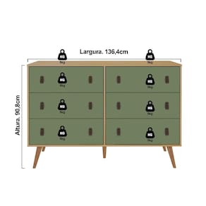 Com design funcional e amplo espaço interno, a cômoda de 6 gavetas é ideal para organizar roupas, acessórios e objetos do dia a dia. Versátil, pode ser usada no quarto, escritório ou em quartos infantis para armazenar itens de cuidados com o bebê. A parte superior também serve como base para itens decorativos, tornando o ambiente mais bonito e organizado.